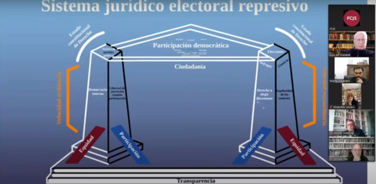 “Por alguna razón los delitos del sistema electoral no han sido estudiados ni teorizados de modo integral. Lo que me propongo es hacer una teoría integral de ello. En el sistema jurídico electoral y el sistema jurídico electoral represivo existen momentos internos. Hay un binomio ilícito-lícito que codifica al derecho; y están los binomios poder-no poder, oficialismo-oposición que codifican a la política. Estos binomios en tensión caracterizan la especificidad del objeto de estudio”, describió.