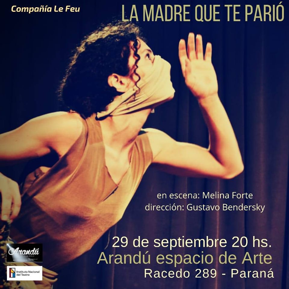 El próximo domingo en horario de las 20, se podrá ver en Espacio Arandú la obra teatral “La madre que te parió”; una puesta de teatro corporal y danza; con dirección de Gustavo Bendersky y la interpretación de Melina Forte.