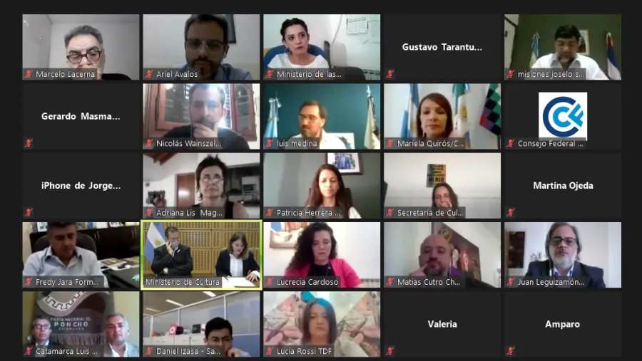El organismo que nuclea a las máximas autoridades de cultura provinciales, fue convocado a través del El Ministerio de Cultura de la Nación, a la tercera y última Asamblea General del Consejo Federal de Cultura del año 2020. Participaron de la misma el ministro de Cultura de la Nación, Tristán Bauer; la secretaria de Desarrollo Cultural, Lucrecia Cardoso, la directora nacional de Integración Federal y Cooperación Internacional, Ariela Peretti, el director de Coordinación Federal, Gustavo Romero y las máximas autoridades de las áreas de cultura de todo el país.