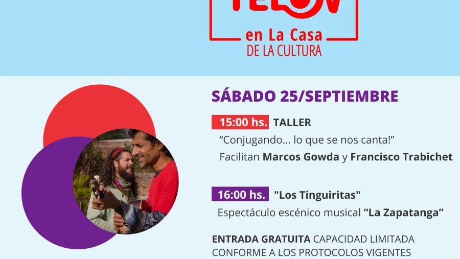 Además del espectáculo se llevará adelante el Taller para toda la familia “Conjugando… lo que se nos canta!”; ambas actividades a cargo del grupo Los Tinguiritas.