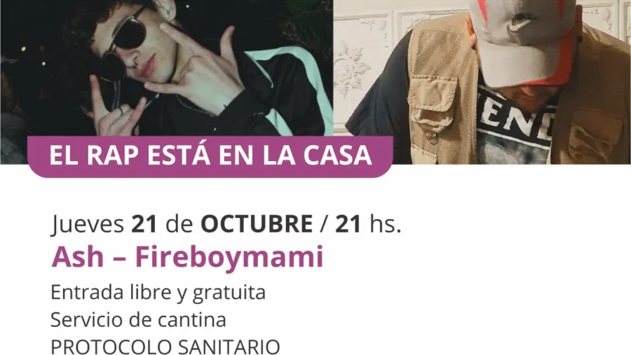 Este jueves en horario de las 21 horas, Casa de la Cultura de Entre Ríos invita a compartir un nuevo encuentro del ciclo El Rap está en la Casa. En esta oportunidad se presentarán los artistas Ash y Fireboymami, que ofrecerán sus líricas urbanas en el escenario emplazado en el patio del centro cultural.