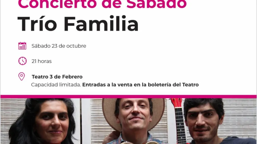 El ciclo que comienza este sábado, tendrá a la música popular sudamericana como protagonista. La cita es a las 21 y en esta oportunidad se presentará El Trío Familia. Actividad arancelada; entradas disponibles en boletería del Teatro 3 de Febrero.