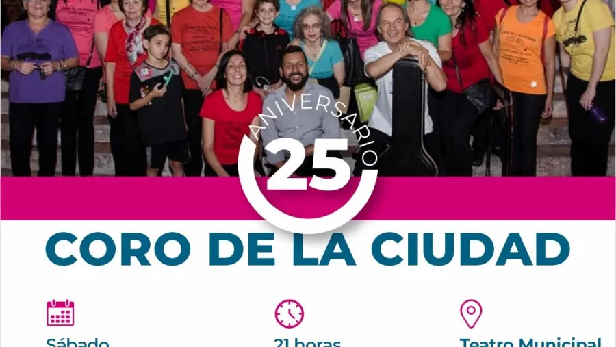 Con entrada libre y gratuita, el próximo sábado el Coro de la Ciudad celebrará sus 25 años de recorrido en el camino de la música. Lo hará a las 21, en el Teatro 3 de Febrero. Las entradas se retiran de manera anticipada por la boletería del teatro.