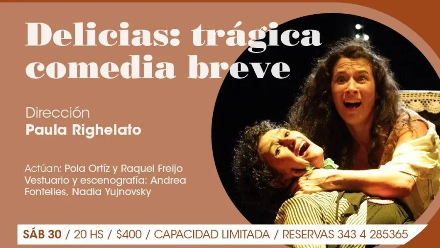 Este sábado a las 20, con la actuación de Raquel Freijo y Pola Ortíz, se estrena la obra teatral “Delicias: trágica comedia breve”, con dirección de Paula Righelatto. La cita es en Casa Boulevard/Sala Metamorfosis, sita en Ituzaingó 80, Paraná.
