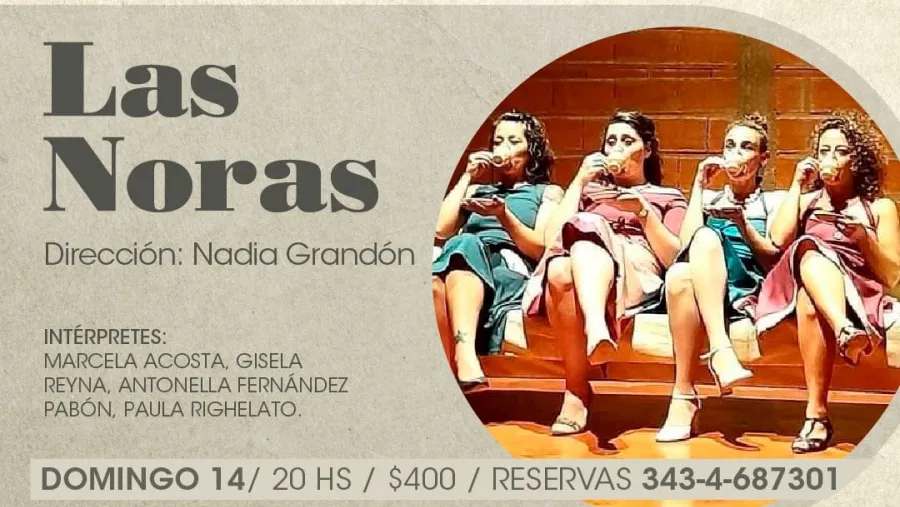 La obra teatral “Las Noras”, se llevará adelante el domingo 14 a las 20 en Casa Boulevard/Sala Metamorfosis -Ituzaingó 80-, de la capital entrerriana. El valor de la entrada es de $400. Reservas al teléfono: 343 4 687301.