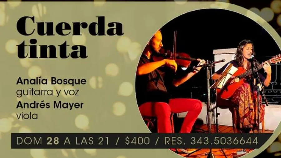 El dúo integrado por Analía Bosque en Guitarra y Voz y Andrés Mayer en viola, se presentan hoy domingo 28 de noviembre, a las 21 hs. en Casa Boulevard (Ituzaingó 80).