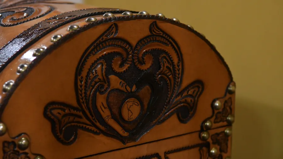 El 2do. Premio Adquisición del Gobierno de Entre Ríos a: MARIO DANIEL PICCINI, artesano del cuero de la ciudad de Gualeguaychú por su Pieza Única “Cofre”
