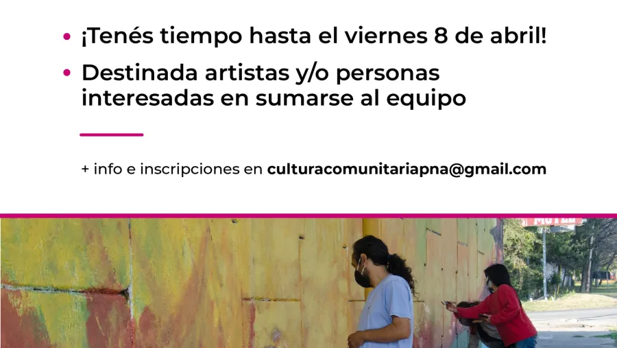 Inscripciones a culturacomunitariapna@gmail.com con el asunto: “CONVOCATORIA Mural monumental”