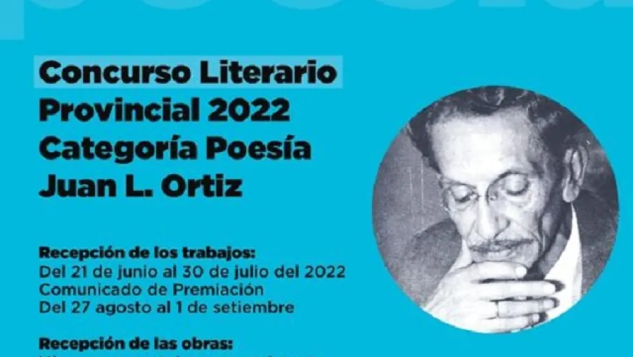 La Biblioteca Provincial de Entre Ríos abrió la convocatoria para el VI Concurso Literario Provincial Juan L. Ortiz 2022 Categoría poesía, edición 2022. Los trabajos se reciben hasta el 30 de julio de 2022 inclusive.