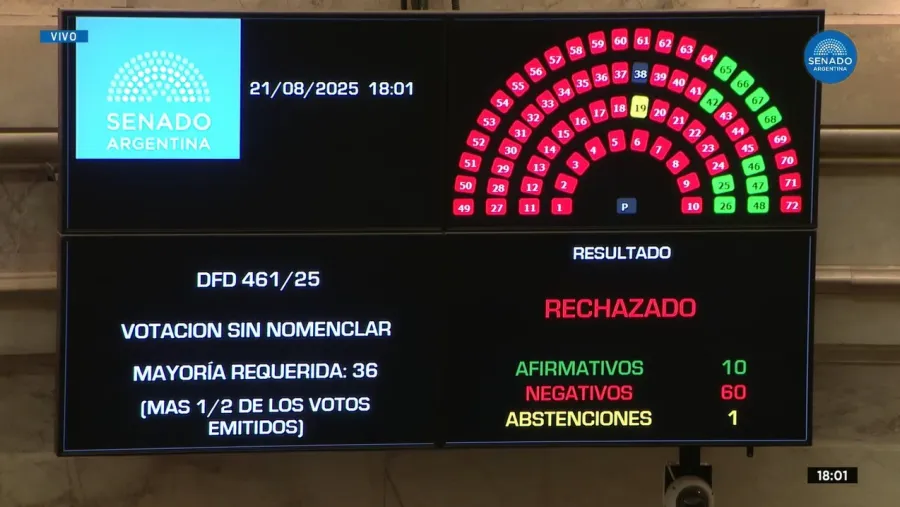 Con 13 votos afirmativos, 57 negativos y 1 abstención, el instituto continuará su curso, al igual que la Comisión Nacional de Bibliotecas Populares (Conabip), que también estaba en juego. Este resultado marcó un momento bisagra en la opinión del poder legislativo de cara al ejecutivo.