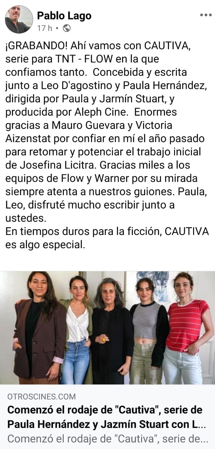 “Cautiva nos encuentra en un nuevo proyecto junto a Warner, con una historia reveladora y un elenco de actrices protagonistas argentinas que se sumará al catálogo de Flow, como parte de nuestra estrategia de inversión en la ficción nacional”, comentó Antonio Álvarez, director de Programación y Contenidos en Telecom Argentina.
