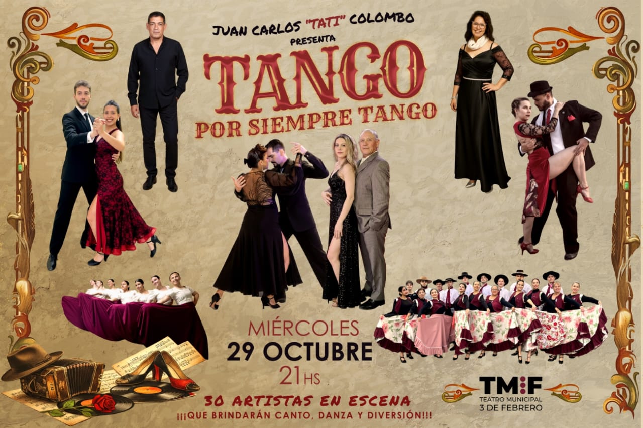 Este miércoles 29 de octubre a las 21, el Teatro 3 de Febrero será escenario de una velada única dedicada a la música ciudadana. El espectáculo “Tango por Siempre Tango”, organizado por el reconocido bailarín y profesor paranaense Juan Carlos “Tati” Colombo, reunirá a más de 40 artistas en escena en una producción que promete emoción, talento y una puesta desbordante de pasión tanguera.