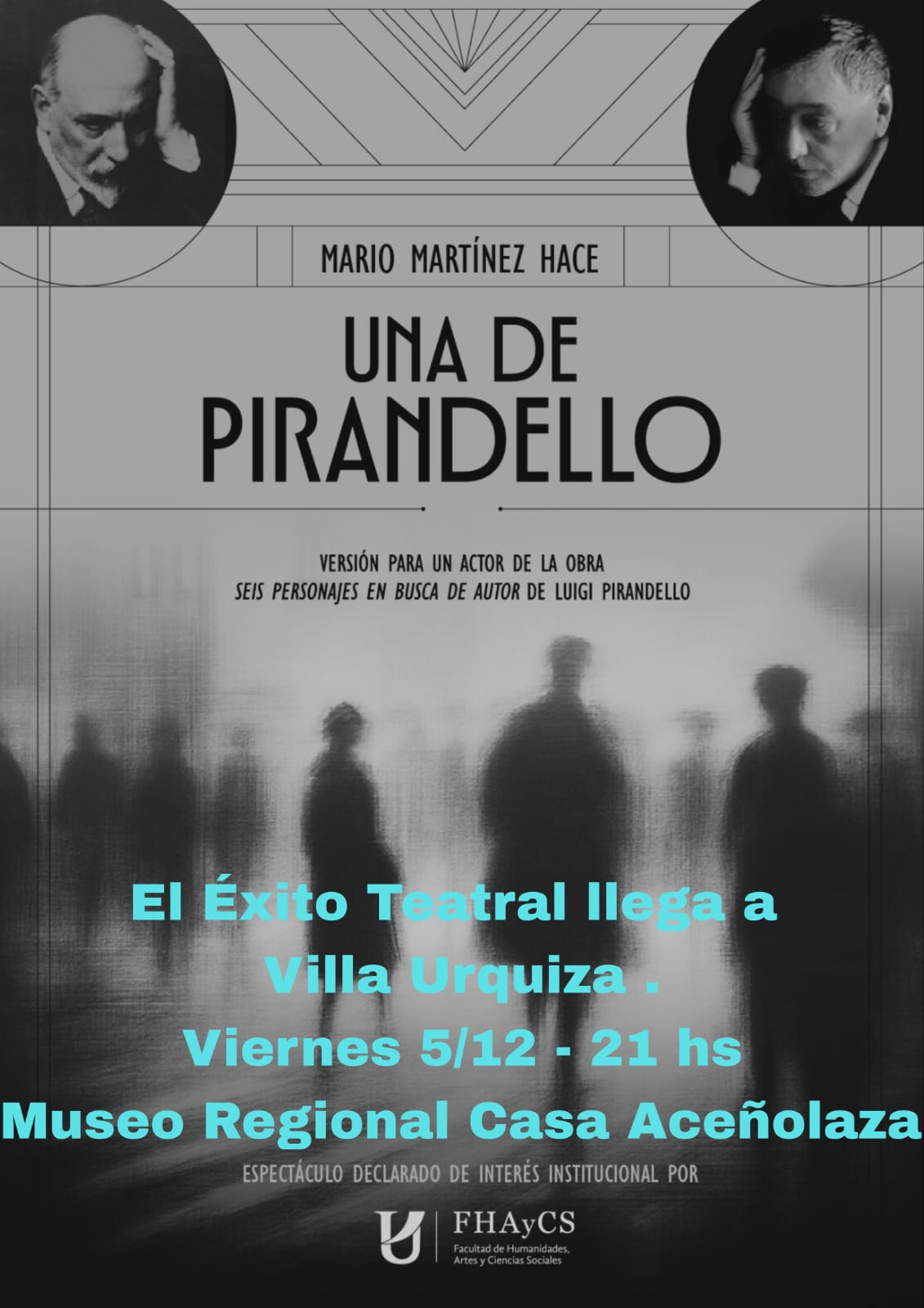 El reconocido actor, director y escenógrafo paranaense, Mario Martínez, presentará el viernes 5 de diciembre, desde las 21, en el Museo Regional Casa Aceñolaza de Villa Urquiza, “Una de Pirandello”, adaptación teatral de la obra “Seis personajes en busca de autor”, de Luigi Pirandello.