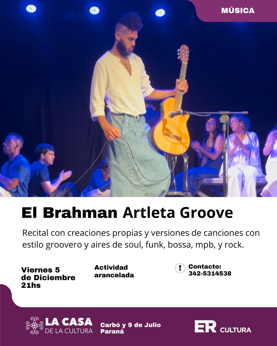 Este viernes 5 de diciembre, a las 21, la Casa de la Cultura de Paraná recibirá nuevamente a El Brahman, quien presentará su espectáculo “Artleta Groove”, un viaje musical que atraviesa sensaciones, tiempos y dimensiones estéticas.