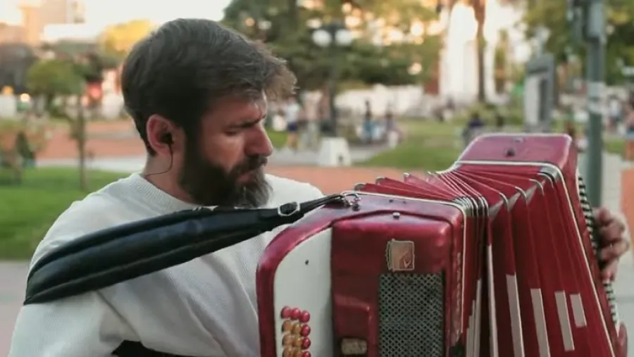 La propuesta comenzó de manera sutil: un ensamble de cuerdas emergió desde distintos puntos del espacio urbano y fue confluyendo en la peatonal, generando un clima de atención y curiosidad. Minutos más tarde, Bilat se sumó con su acordeón para interpretar versiones renovadas de clásicos del chamamé, integrando tradición y contemporaneidad en una puesta que desdibujó los límites entre escenario y espacio público.