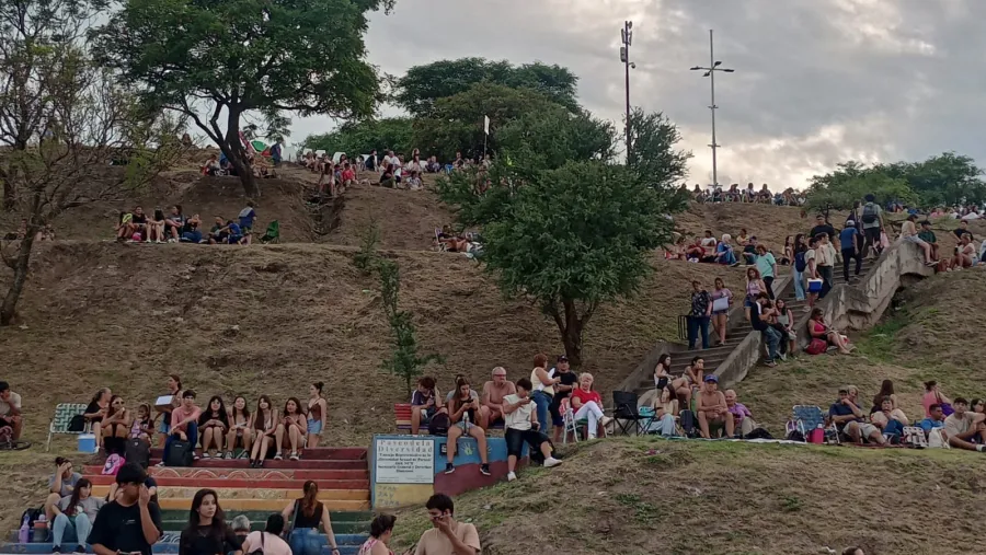 La gente sigue sumándose. Hay grupos que llegan directamente del trabajo, todavía con ropa formal, y otros que ya vienen preparados para quedarse hasta el final. Las rondas de mate se multiplican. Algunos llevan termos grandes, de esos que parecen pensados para no volver a cargar agua en toda la noche.