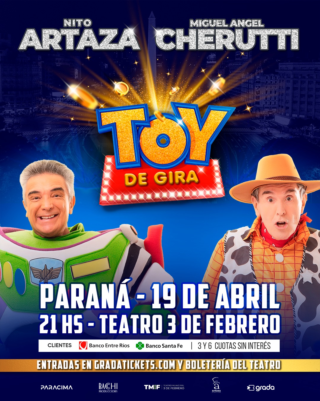 Los históricos humoristas Nito Artaza y Miguel Ángel Cherutti volverán a compartir escenario en Paraná con “Toy de gira”, un espectáculo que marca el reencuentro de dos referentes del humor argentino tras años de trayectorias por separado.