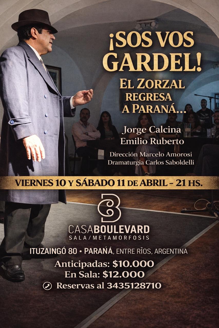 La cartelera cultural de Paraná suma una propuesta que combina historia, música y teatro. Se trata de “Sos vos, Gardel” (El día que Paraná conoció al Zorzal), la obra escrita por Carlos Saboldelli, que regresará a escena este viernes 10 y sábado 11 de abril.