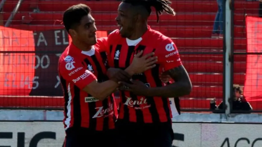 Hugo Silveira festejando un gol junto a Cristian Tarragona en Patronato.