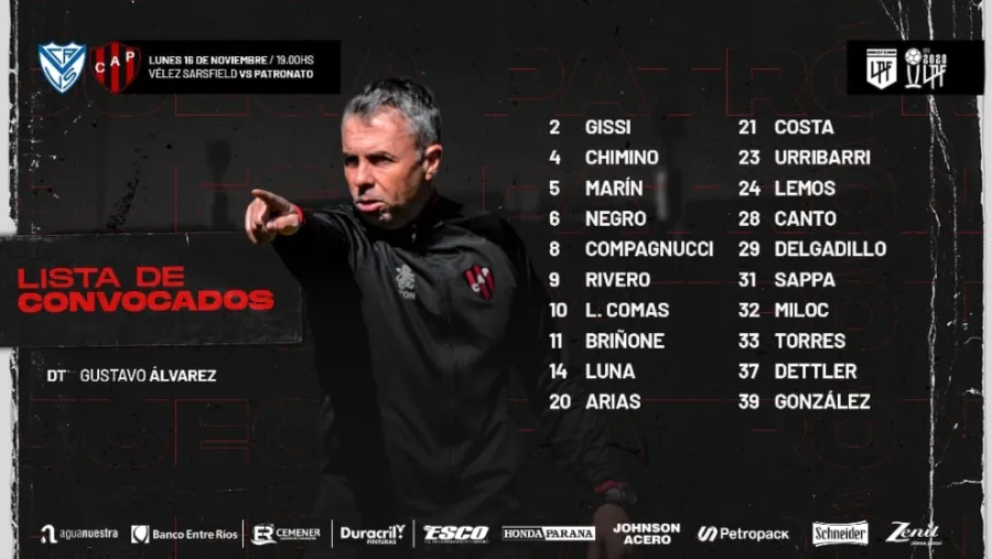 Este domingo el plantel de Patronato partió hacia Buenos Aires para enfrentarse a Vélez Sarsfield. El entrenador confirmó la lista de 20 futbolistas que viajaron a Liniers para el partido de este lunes a las 19. El Patrón buscará su primer éxito del torneo.