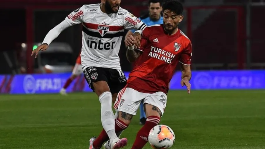Milton Casco en el último duelo de River por Copa Libertadores ante Sao Paulo.