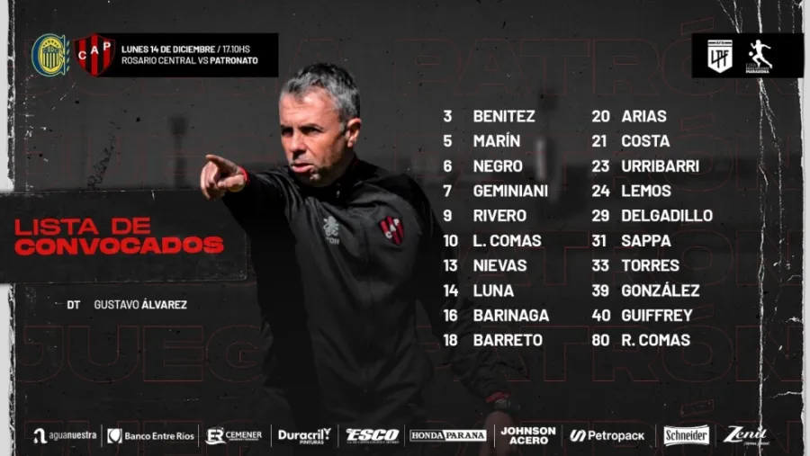 Este domingo, Gustavo Álvarez reveló el listado de jugadores que partirán a Rosario para medirse ante Central en el arranque del Grupo A de la Zona Campeonato. El Patrón irá a la Chicago argentina con 20 futbolistas, pero con varias bajas confirmadas en las últimas horas.