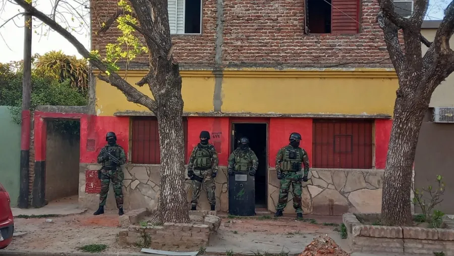 Además, y en otro de los allanamientos muy cerca de la casa de Nano Leiva, en este caso de un familiar de 18 años, fueron secuestrados armas, balas y drogas, aunque no pudieron detenerlo. Por las características de los elementos secuestrados, es decir, estupefacientes, se dio intervención a la justicia federal por la presunción de la infracción de la ley nacional de estupefacientes N° 23.737, consigna Canal Veo.