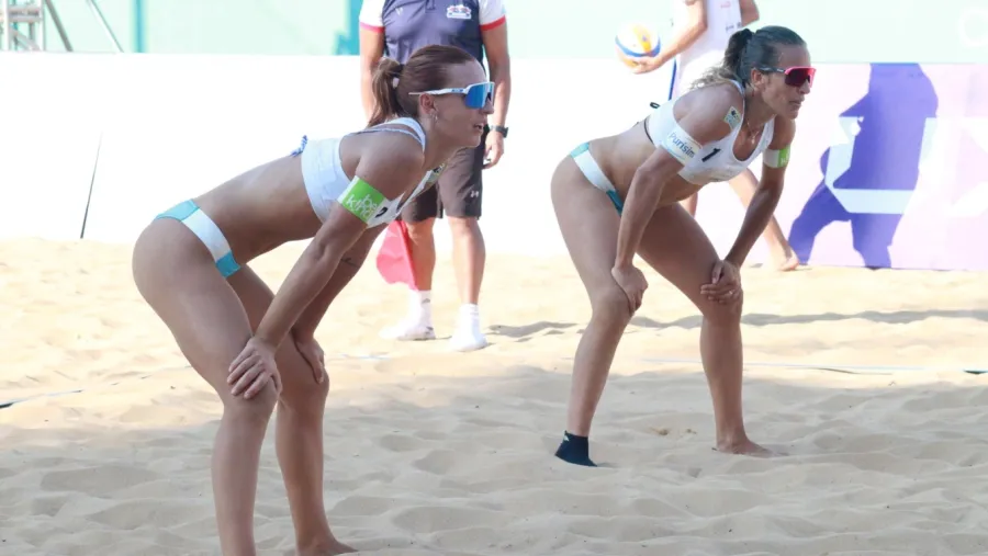 Paraguay, por su parte, debió derrotar a Perú y lo hizo con un sufrido 3-1. En el primer turno, la dupla de Michelle Valiente y Giuliana Poletti venció a la pareja peruana compuesta por Kyara Becerra y Edith Gonzales por 2-0 (21/8 y 21/13); mientras que Lisbeth Allcca y Claudia Gaona igualaron el juego para Perú luego de vencer a Erika Mongelos y Fiorella Núñez por 21/17, 18/21 y 15/10.