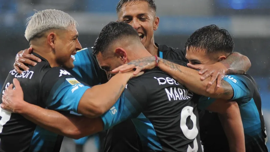 El enfrentamiento comenzó con un claro dominio de los conducidos por Gustavo Costas, que bajo la lluvia encontraron la ventaja a los 11 minutos luego de un robo surgido de la presión de Johan Carbonero y Adrián Martínez. El colombiano tomó el balón y luego habilitó al ex Instituto, que definió al poste izquierdo de Franco Petroli para estampar el 1-0 parcial.