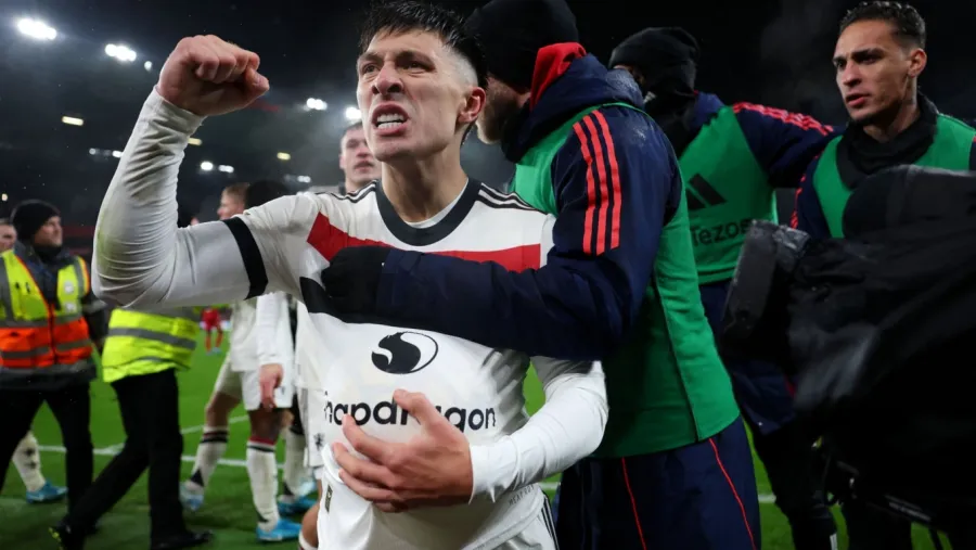 En el complemento, el encuentro se abrió rápido. Fue Lisandro Martínez quien abrió el marcador aprovechando una jugada en la que quedó en posición de ataque y recibió una excelente asistencia del portugués Bruno Fernandes. Tras avanzar por la izquierda, el zaguero gualeyo sacó un potente y alto remate que dejó sin nada que hacer a Alisson, que sufrió el 1-0 parcial a los siete minutos.