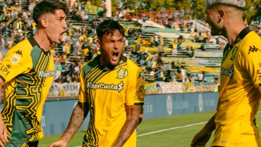 Gonzalo Mottes (izquierda) anotó el primero de los dos goles de Aldosivi.