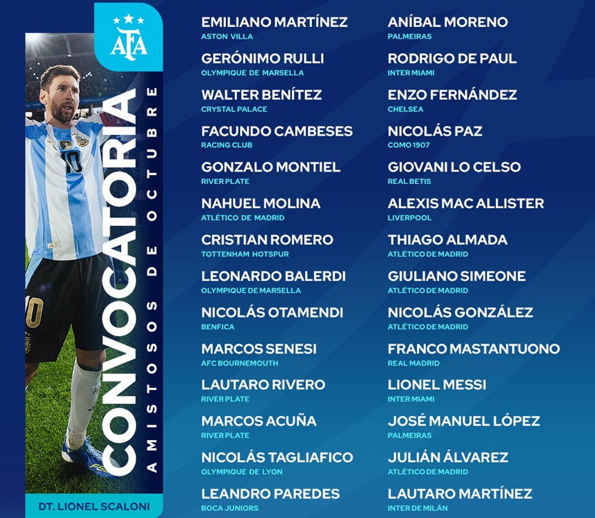 Por otro lado, fuera de las novedades por los nuevos convocados, se sumaron a la nómina los regresos del mediocampista del Chelsea Enzo Fernández y el defensor del Bournemouth Marco Senesi, mientras que José López, la figura de Palmeiras, se mantuvo en la consideración del entrenador.