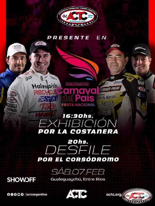 El Turismo Carretera dirá presente en el Carnaval del País. Este sábado 7 de febrero, a las 20, autos de la Máxima desfilarán por el Corsódromo de Gualeguaychú, para que todo el público presente los pueda ver de cerca.