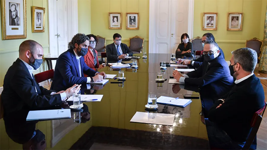 El jefe de Gabinete de Ministros de la Nación, Santiago Cafiero, encabezó una nueva reunión del gabinete económico que se llevó a cabo en el Salón de los Científicos de la Casa Rosada, de la que participaron los ministros de Economía, Martín Guzmán; Desarrollo Productivo, Matías Kulfas; Trabajo, Claudio Moroni; Desarrollo Social, Juan Zabaleta, junto al presidente del Banco Central, Miguel Pesce; la titular de la Administración Federal de Ingresos Públicos (AFIP), Mercedes Marcó del Pont y la vicejefa de Gabinete, Cecilia Todesca Bocco.