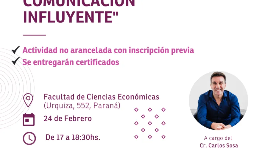 Se encuentran abiertas las inscripciones para la charla sobre “Liderazgo y comunicación influyente”, que se realizará el jueves 24 de febrero, con inscripción previa, en la Facultad de Ciencias Económicas de la UNER.