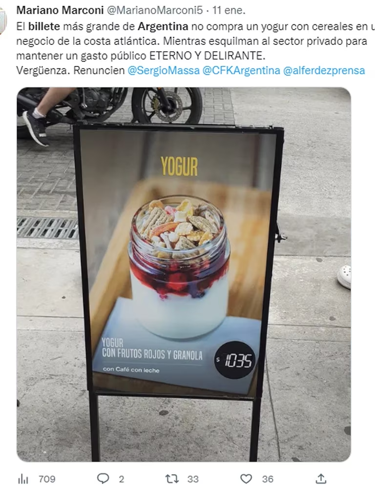 Desde que fue emitido hace poco más de 5 años el billete de $1.000 ya perdió más del 90% de su poder adquisitivo. Actualmente, tiene un valor, siempre teniendo en cuenta la cotización del dólar libre, que en algunas ciudades de Estados Unidos no alcanzaría para pagar un billete de colectivo o que, como posteó el miércoles pasado un tuitero, no alcanza a comprar un yogur con cereales en un negocio de la Costa Atlántica, cuyo precio exhibió mostrando el cartel con su precio: 1.035 pesos.