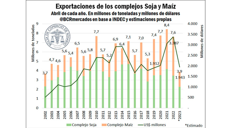 El dato es significativo teniendo en cuenta que los complejos de soja y maíz son los dos que más dólares aportan a la economía argentina.
