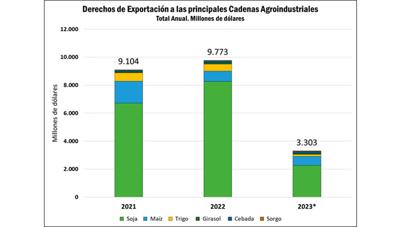 En paralelo, esto es un dolor de cabeza no solo para los productores y la economía, sino también para el Gobierno, que recaudaría apenas un tercio de los recursos que obtuvo de las retenciones el año pasado.