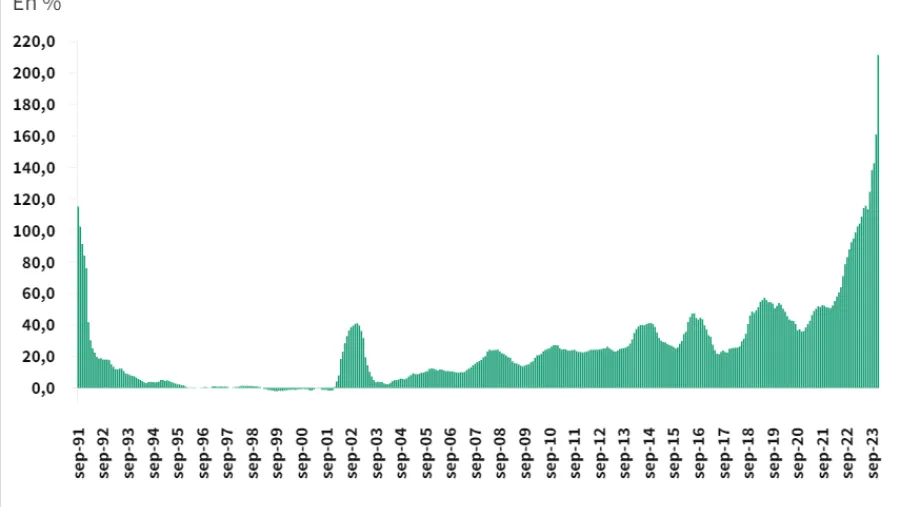 Camilo Tiscornia, director de C&T Asesores Económicos, considera que la inflación del primer mes de 2024 va a estar cerca del 20% o un poco más arriba. “Creo que va a cambiar lo que la va a impulsar en relación a lo que fue diciembre. En enero va a pesar mucho el arrastre de diciembre, el pico del turismo, el aumento de transporte en CABA y GBA, la suba de los combustibles, que fue bastante fuerte pero eso también ocurrió en diciembre, y el aumento de las prepagas”, aseguró.