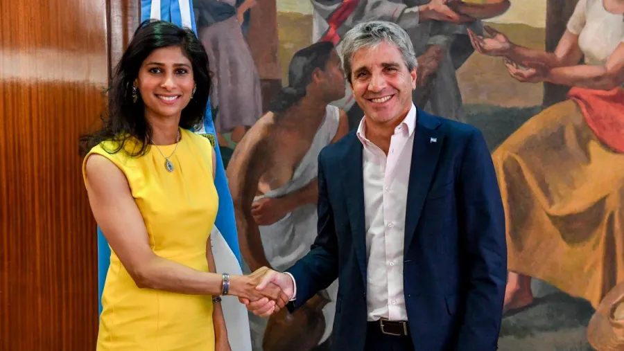 En el encuentro, Caputo estuvo secundado por su secretario de Finanzas Pablo Quirno, el director argentino ante el FMI Leonardo Madcur, el presidente del Banco Central Santiago Bausili y el vice de esa institución Vladimir Werning. Del otro lado de la mesa, junto a Gopinath, estuvieron el subdirector del Departamento del Hemisferio Occidental Luis Cubeddu, el jefe de la misión argentina ante el directorio del Fondo Ashvin Ahuja y el representante permanente en el país, Ben Kelmanson.