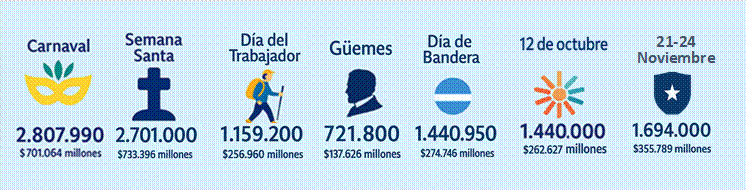 El impacto de estos feriados fue significativo no sólo por la cantidad de personas movilizadas, sino también por su efecto dinamizador sobre las economías regionales, beneficiando a miles de pymes vinculadas con la actividad turística.