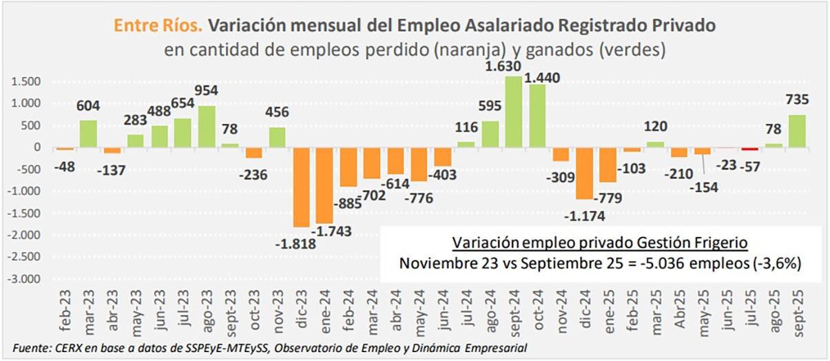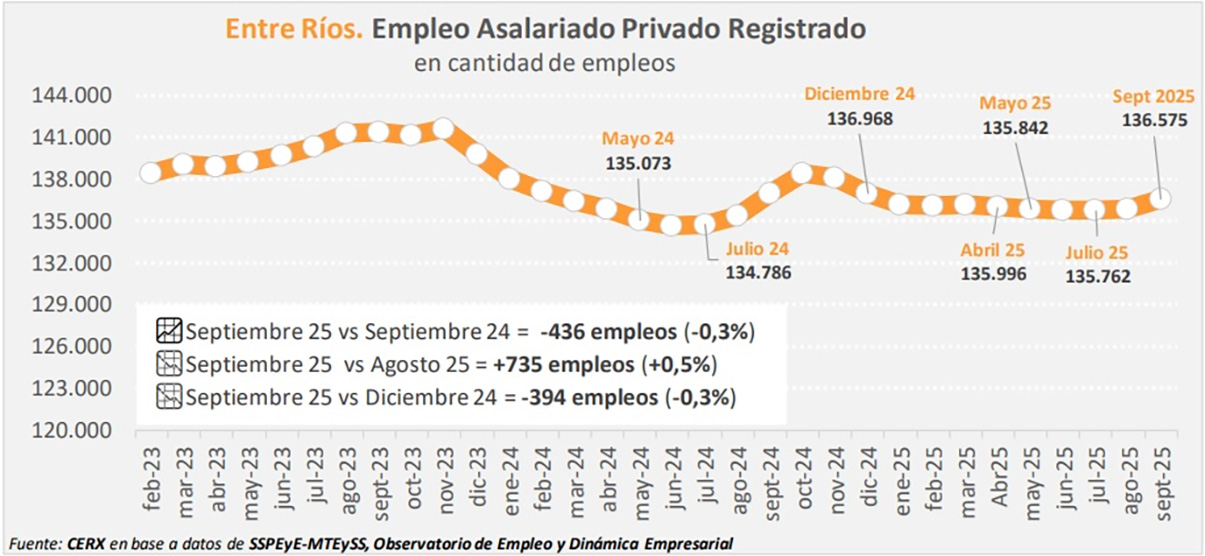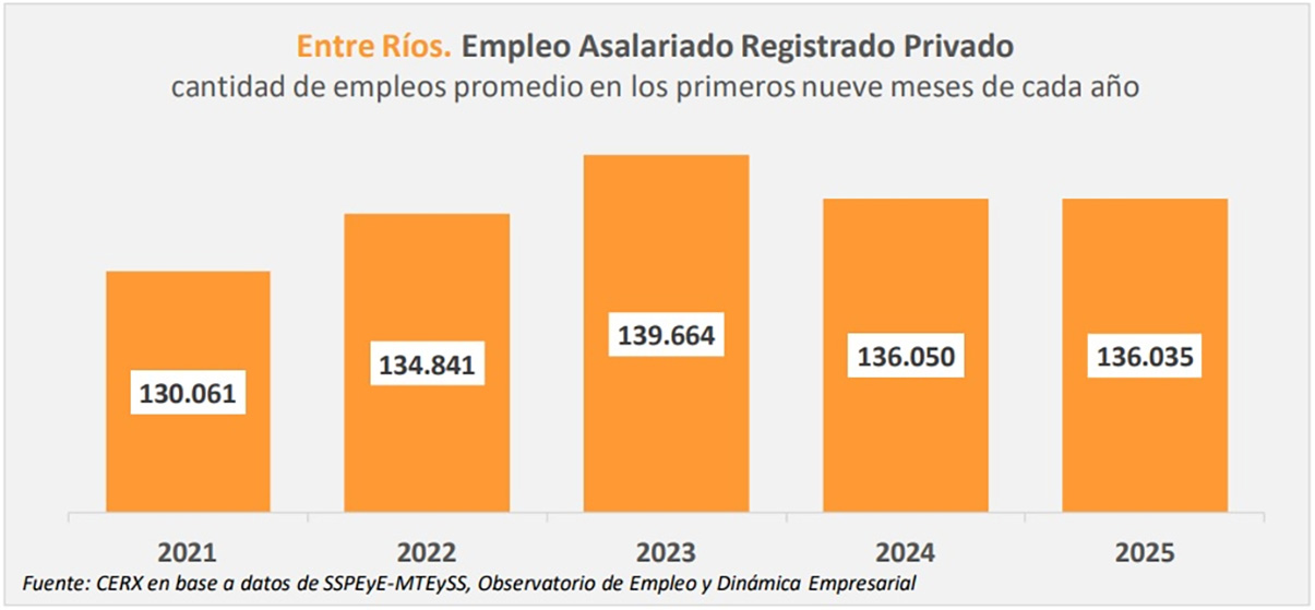 El Centro de Economía Regional y Experimental indicó que el empleo privado registrado en Entre Ríos, con datos a septiembre de 2025, da negativo en más de 5.000 empleos.
