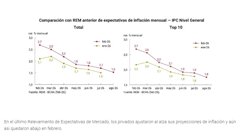 Sin embargo, el presidente Milei ya marcó que luego de marzo el indicador debería entrar en un terreno de desaceleración para que a mediados de año arranque con un cero, lo que en parte genera expectativas con el peligro de que no se cumpla. Sobre todo cuando no coincide con las proyecciones que tienen los privados, que en el último Relevamiento de Expectativas de Mercado (REM) del Banco Central, cambiaron sus estimaciones al alza.
