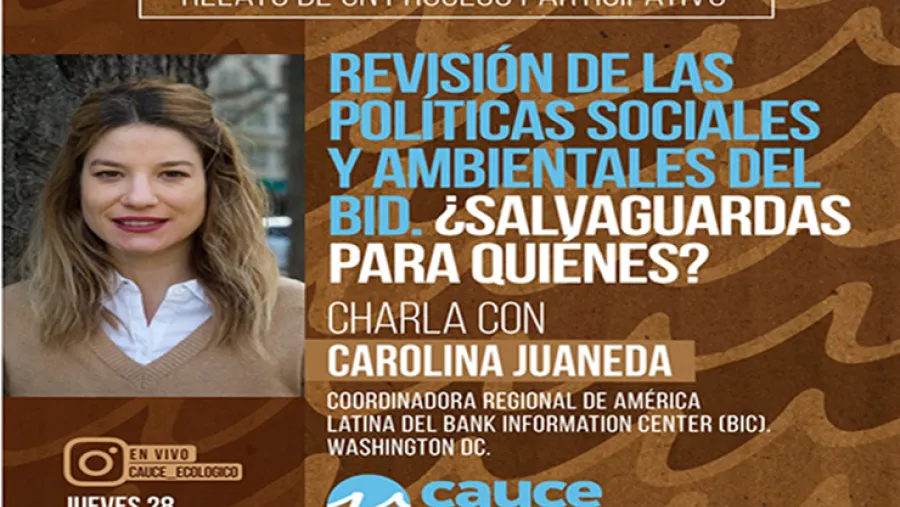 Bajo el título “Revisión de las políticas sociales y ambientales del Banco Interamericano de Desarrollo (BID). ¿Salvaguardas para quiénes?”, la fundación Cauce, Cultura Ambiental-Causa Ecologista, pone en debate el documento y recomendaciones que elaboraron 50 organizaciones de la sociedad civil.