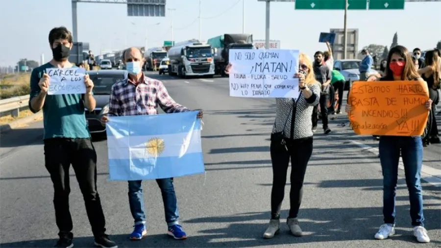 El reclamo por la Ley de Humedales y las acciones para manifestarse contra las quemas de los ambientalistas fueron varios a lo largo de los meses de quemas desde el comienzo de año, pero esta fue la primera vez que la manifestación se realiza a través de un corte de tránsito.