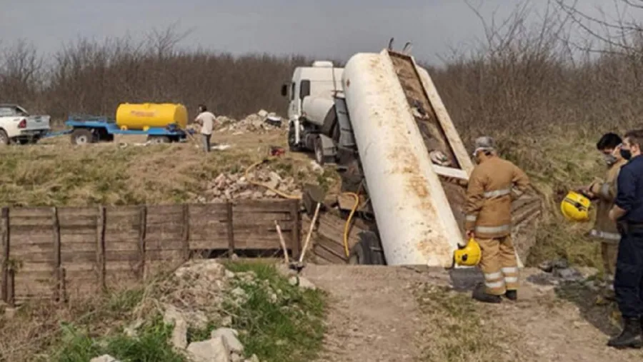 El conductor de un camión se desorientó y transitó por un sector donde había un puente de madera en mal estado. Intentó pasarlo, pero la cisterna cayó en el arroyo Gena, donde comenzó a perder el fertilizante.