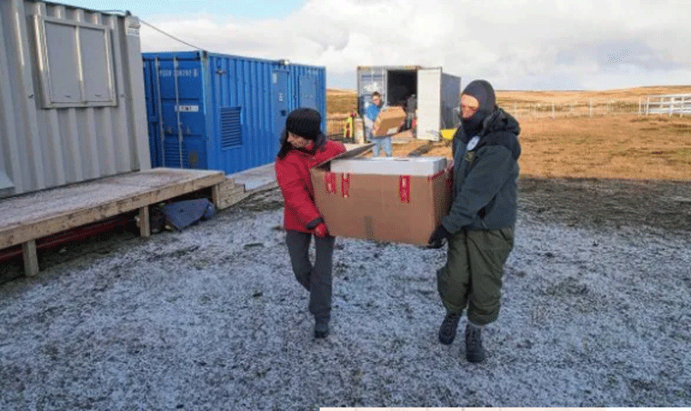El avión que trasladó las muestras -un Learjet 60 de la empresa IMAS Group, contratado por AA2000- despegó este jueves por la mañana desde el aeropuerto de San Fernando, con destino a la aeroestación de Mount Pleasant, en las islas, donde se embarcó Fondebrider y se dirigió en un vuelo directo hacia la capital cordobesa, donde aterrizó a las 14.10.