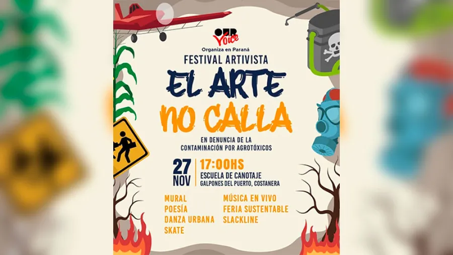 Invitan al Festival “El arte no calla” organizado por Our Voice Paraná. El evento se realizará este sábado desde las 17 en los Galpones del Puerto de la Costanera (Escuela de Canotaje).