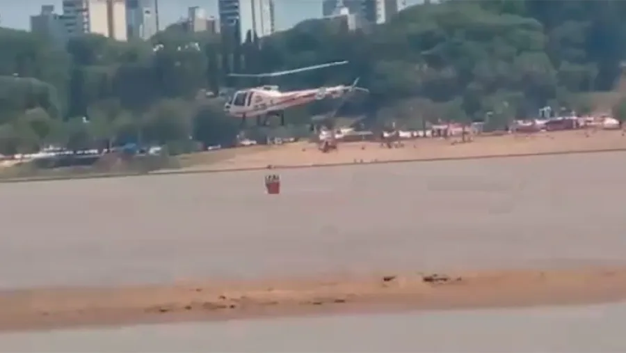 Pasada las 15.30 un helicóptero hidrante llegado desde Rosario comenzó a sobrevolar el incendio para continuar con las tareas y tratar de sofocar por completo las llamas.