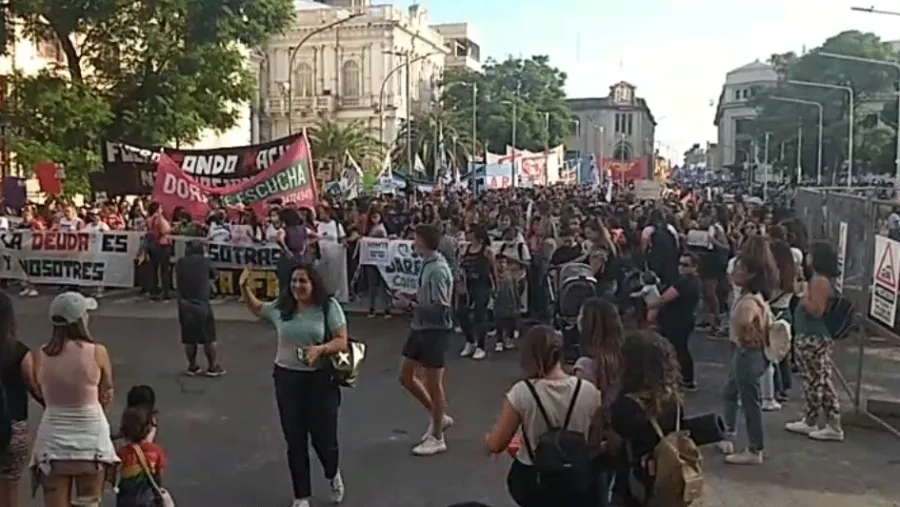 "La deuda es con nosotras" fue la consigna principal de la convocatoria en Paraná, la que quedó plasmada en la bandera principal que fue al frente de la marcha, acompañada de la exigencia "Fuera FMI". Las organizaciones cuestionaron duramente el acuerdo con el Fondo Monetario Internacional (FMI) que esta semana se debate en el Parlamento, al que consideraron ilegítimo.